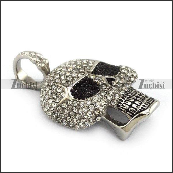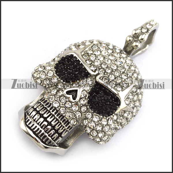 Skull Face Pendant full of Clear Rhinestones and 2 Black Rhinestones Eyes p004321