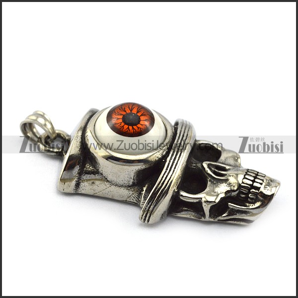 Brown Evil Eye Stainless Steel Cowboy Skull Pendant p005277