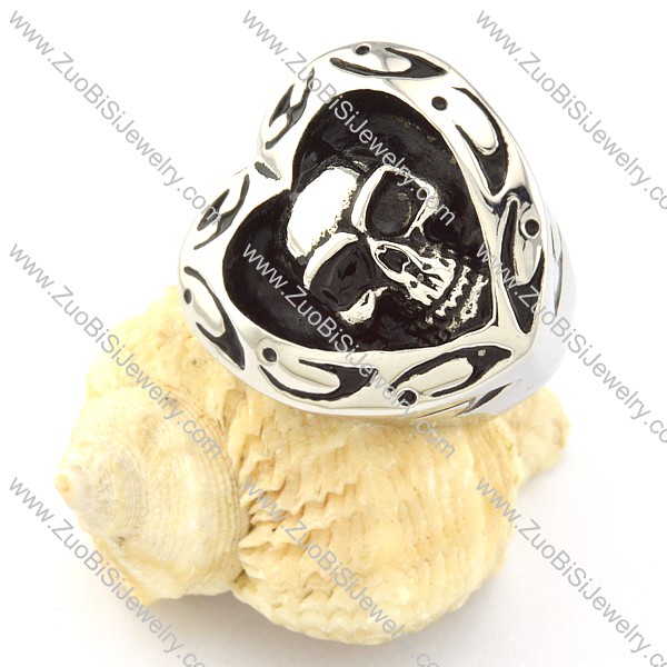 Heart Shaped Skull ring in Stainless Steel -r000694