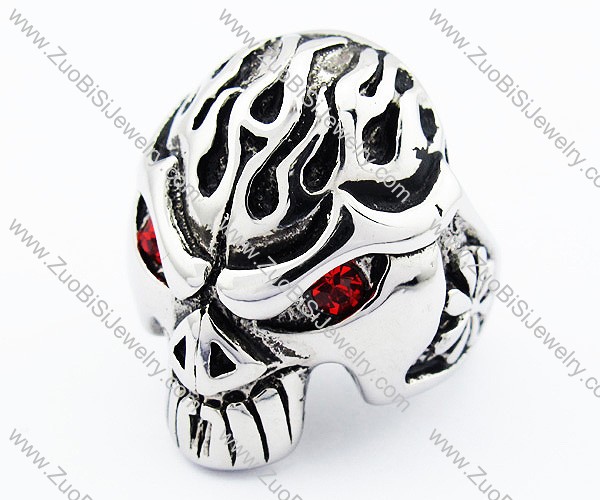 Stainless Steel Red Zircon Eye Solid Skull Ring - JR300003