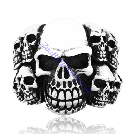 Bigger Multi Skull Head Ring in 316L Stainless Steel -JR350218