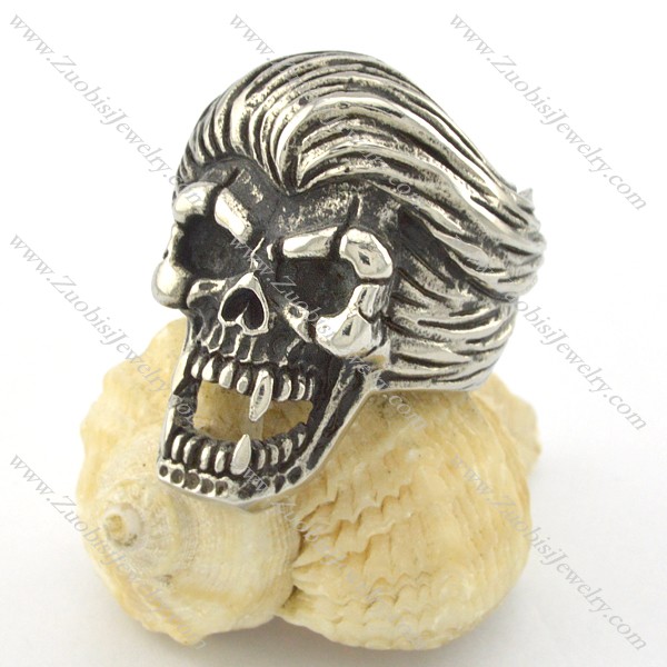 long hair stainless steel casting skull ring r001200