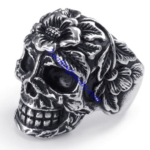 big flower skull ring JR350283