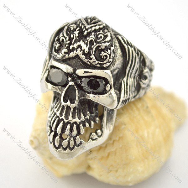 Black zircon eye stainless steel skull ring r001570