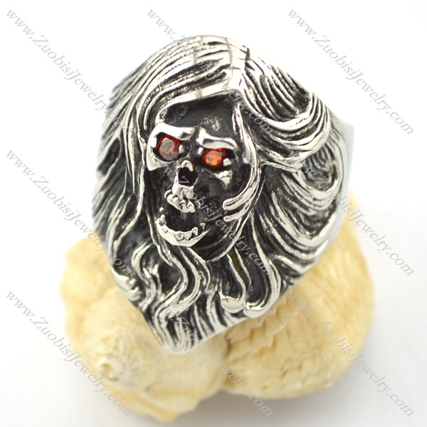 cool skull ring with long hair r001608