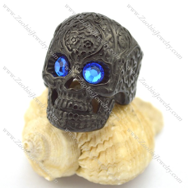 clear blue eye black flower skull ring r002001