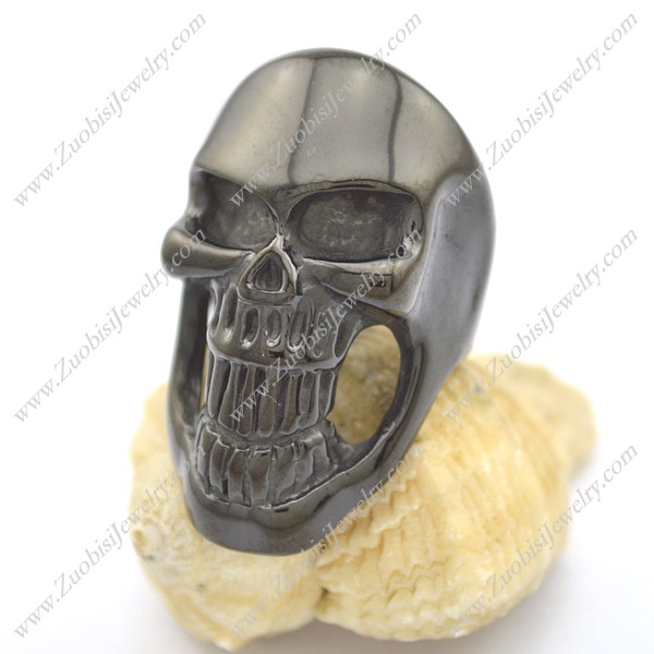 Black Plated Skull Ring with Long Jaw r002388