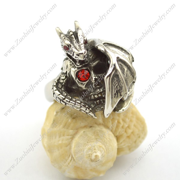 Pterosaur Ring with Red Stone Cyclopia Skull Head in the Middle r002495
