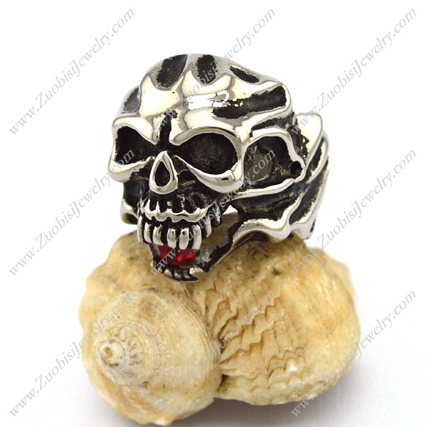 Skull Ring with Red Stone in Mouth r002876