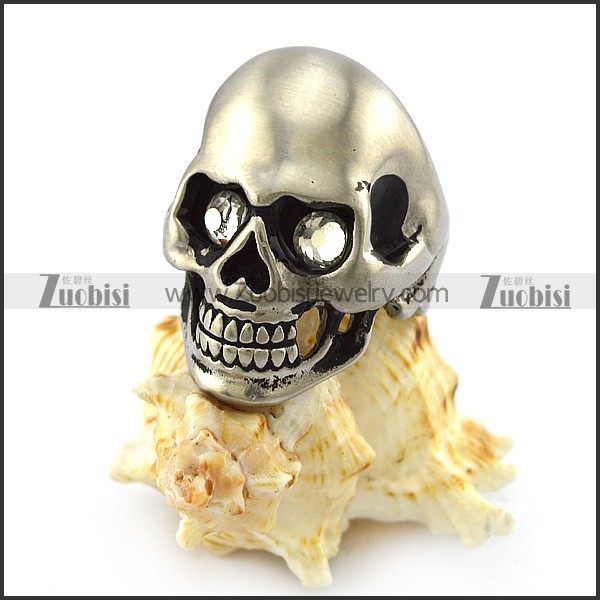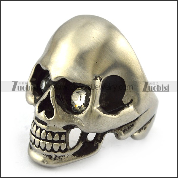 Dull Stainless Steel Skull Ring with 2 Clear Rhinestones Eyes r004287