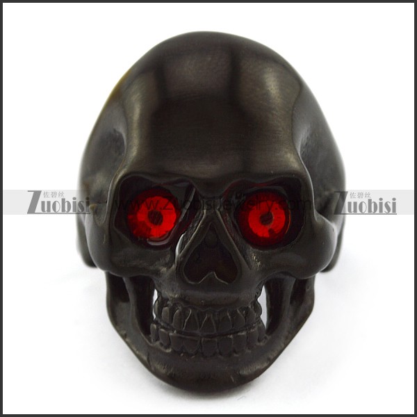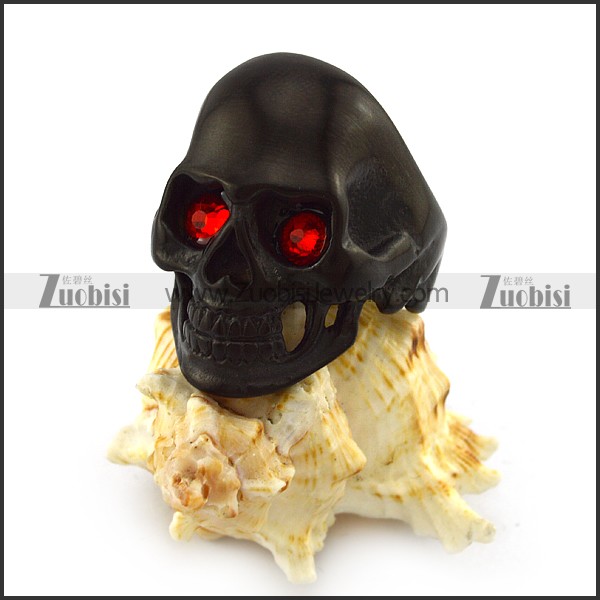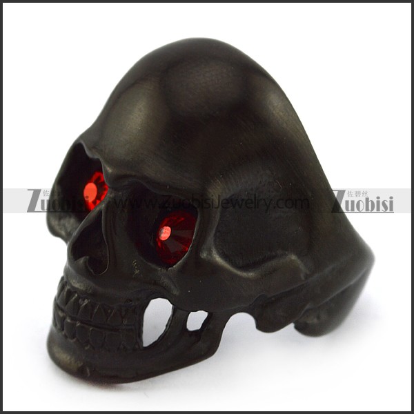 Red Rhinestones Black Stainless Steel Skul Ring r004296