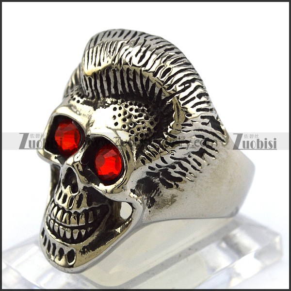 Ruby Skull Ring with Beautiful Hair r004307