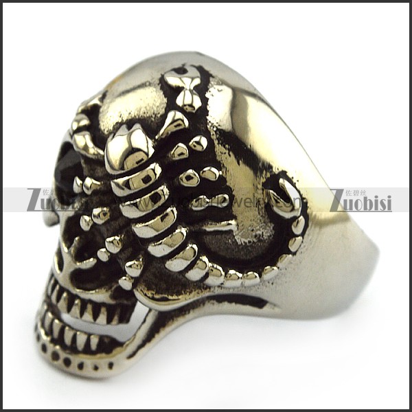 One Black Eye Silver Scorpion Stainless Steel Skull Ring r004319