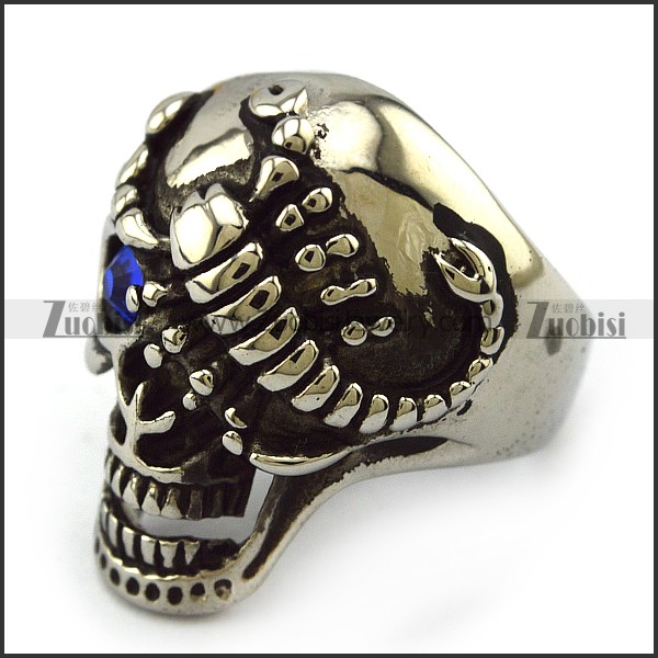 Blue Eye Scorpion Steel Skull Ring r004322