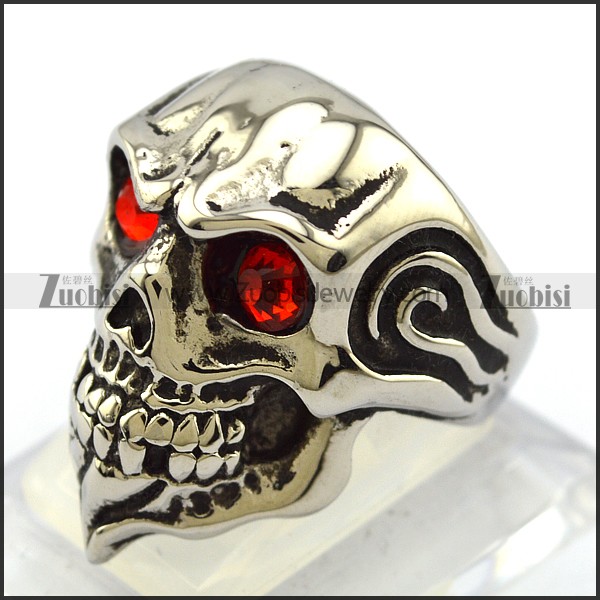 Ruby Rhinestone Eyes Skull Ring with Beard r004323