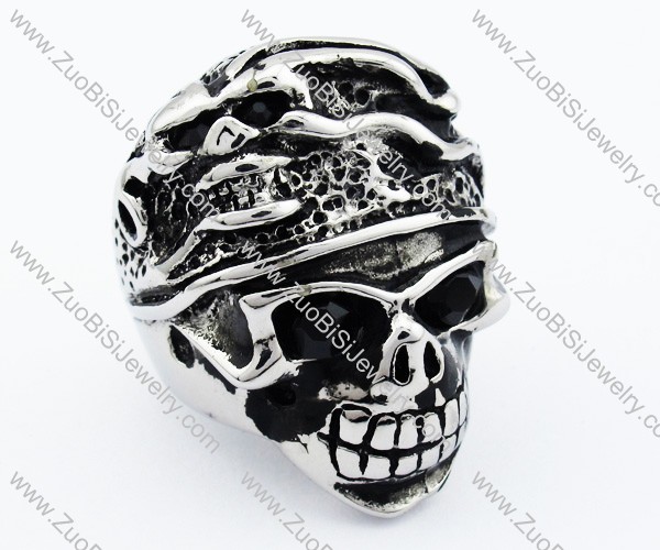 Two Fierce Black Eyes Stainless Steel skull Ring - JR090273