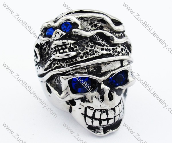 Fierce Stainless Steel skull Ring with blue eyes - JR090274
