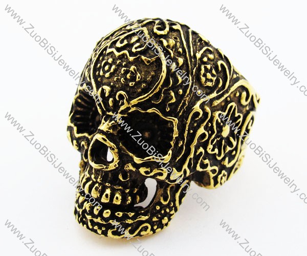 Gold Covered Stainless Steel Skull Ring for man -JR010179