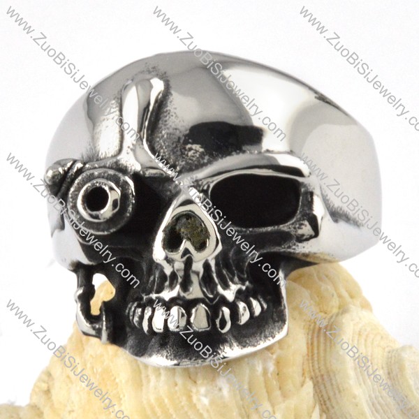 Steel One-eyed Skull Ring - r000076