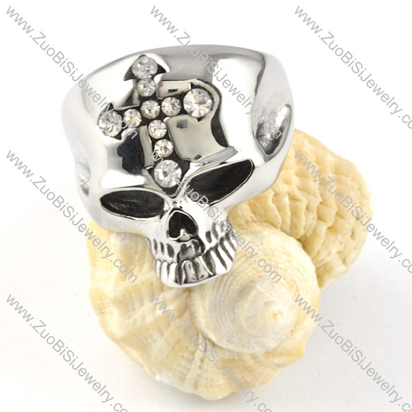 Clear Stone Cross Skull Ring in Stainless Steel -r000363