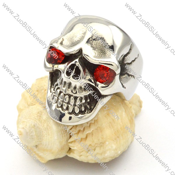 Clear Red Eyes Skull Ring in Stainless Steel -r000427