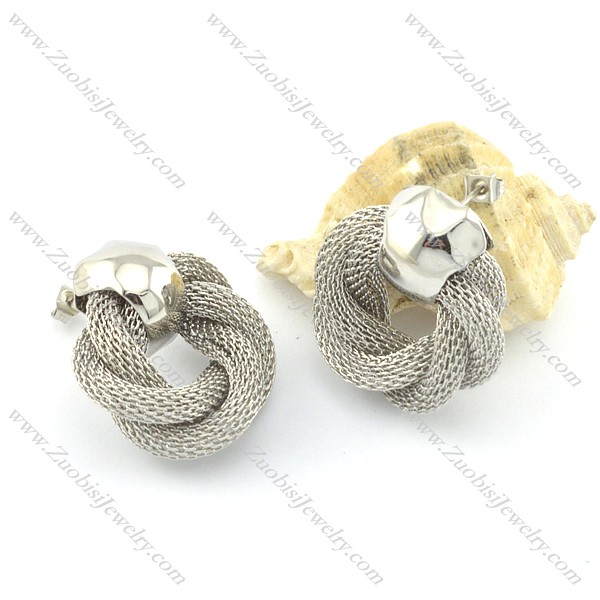silver unique net chain earring e000775