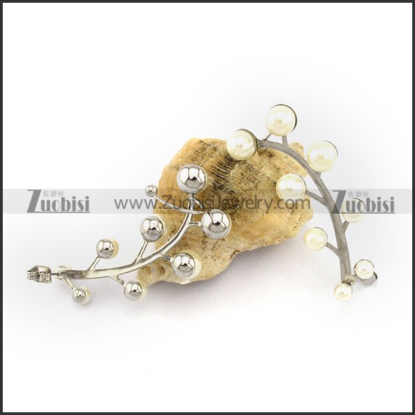 Leaf Shaped Earring with Creamy White Pearls e001145