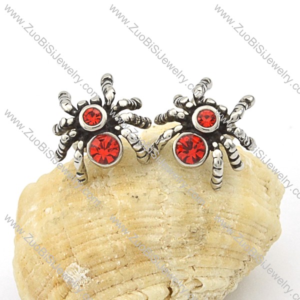 Stainless Steel Red Spider Earrings -e000097