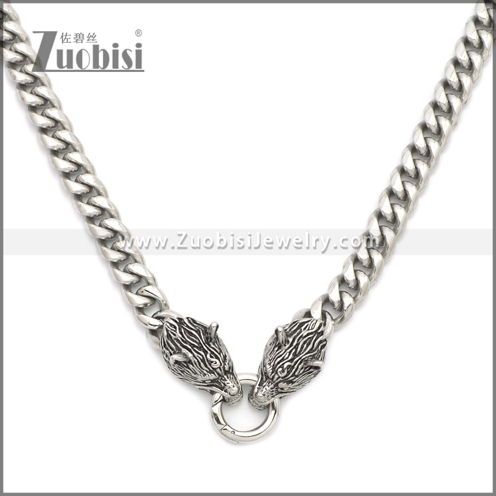Stainless Steel Necklace n003203S, size is n:600*10*5mm, a:32*15*13mm