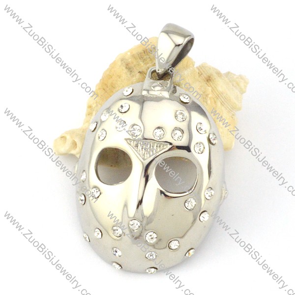halloween masks jewelry pendant in stainless steel metal with many clear rhinestones -p000599, size is 41*34*16mm