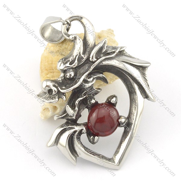 dragon pendant with dark red glass ball p001582