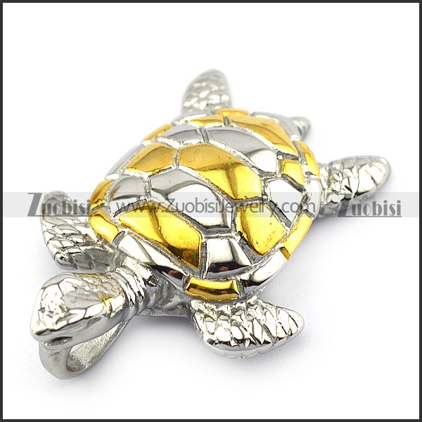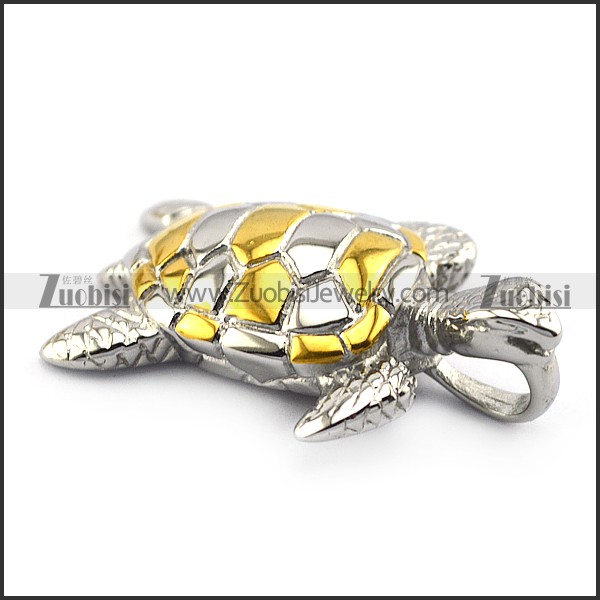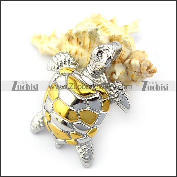 Gold and Silver Steel Sea Turtel Pendant p004892