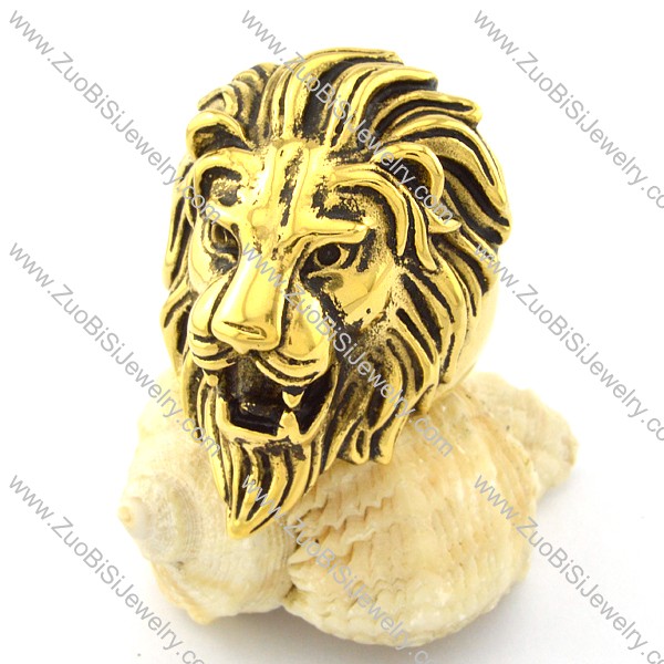 Gold Pating Wild Lion Ring in Stainless Steel -r000723