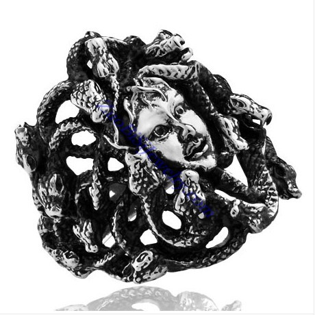 beautiful snake stainless steel medusa ring with a lady face JR350192