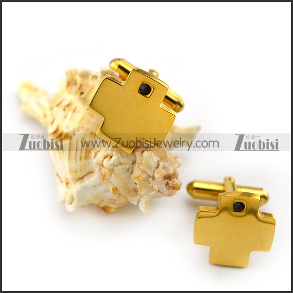 Yellow Gold Stanless Steel Cross Cufflink c000061