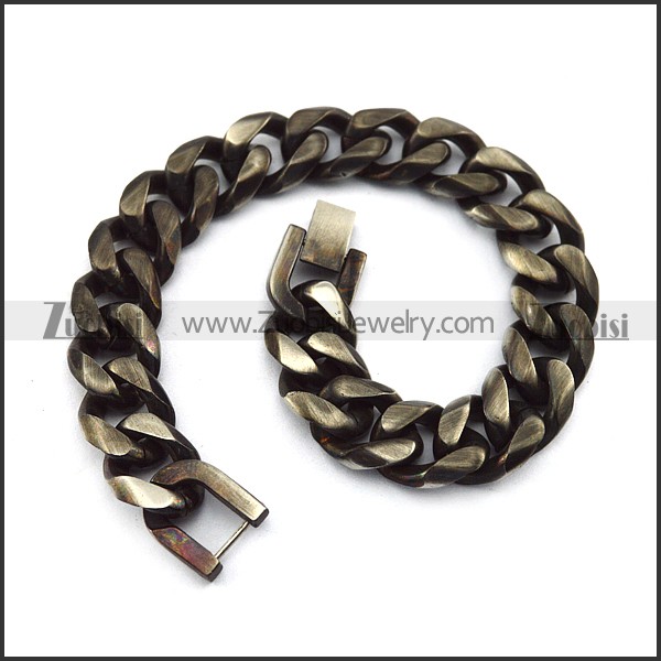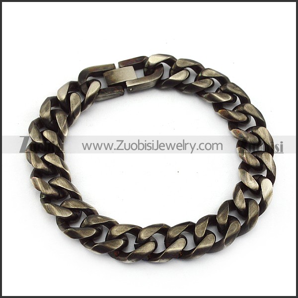 Stainless Steel Link Bracelet in Black Burnout Finishing with Pearl Buckle b005860
