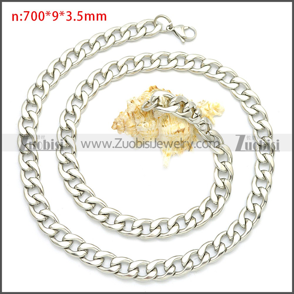 Stainless Steel Chain Neckalce n003091SW9, size is n:700*9*3.5mm