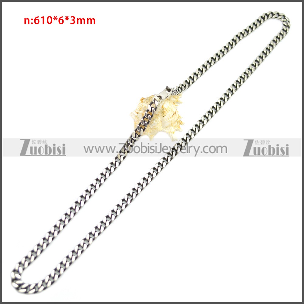 Stainless Steel Chain Neckalce n003144SA5, size is n:610*6*3mm