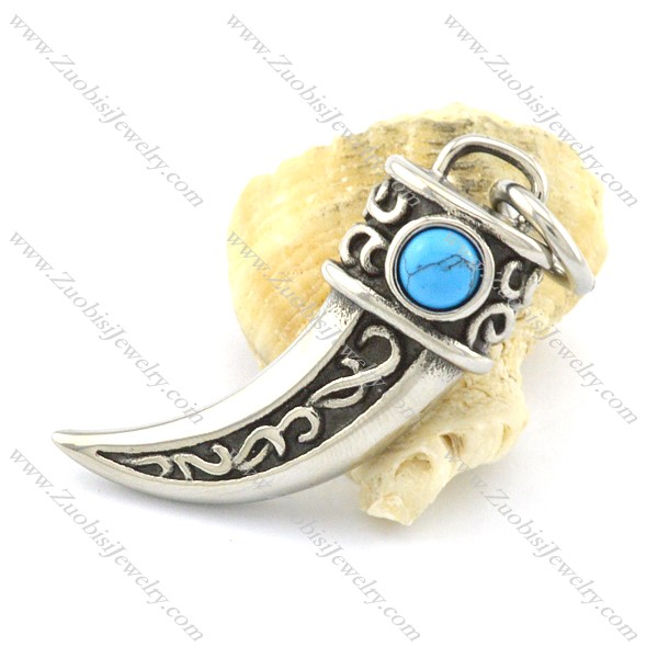 turquoise stone wolf tooth pendant p001355