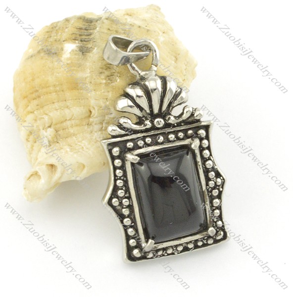 black stone pendant in stainless stee metal p001472
