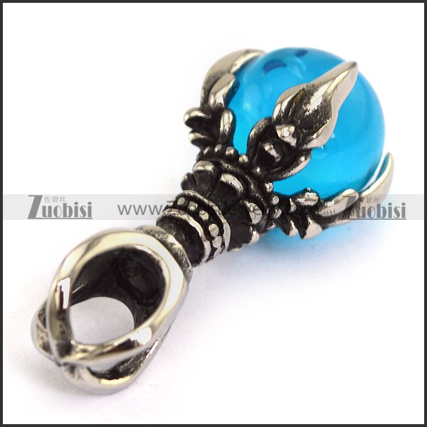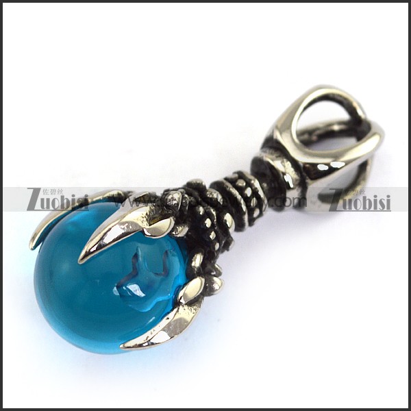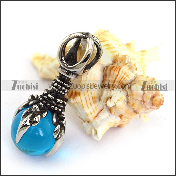 Vintage Stainless Steel Pendant with Clear Blue Ball p003948