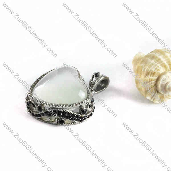 Cream White Stone Stainless Steel Heart Pendant - p000094
