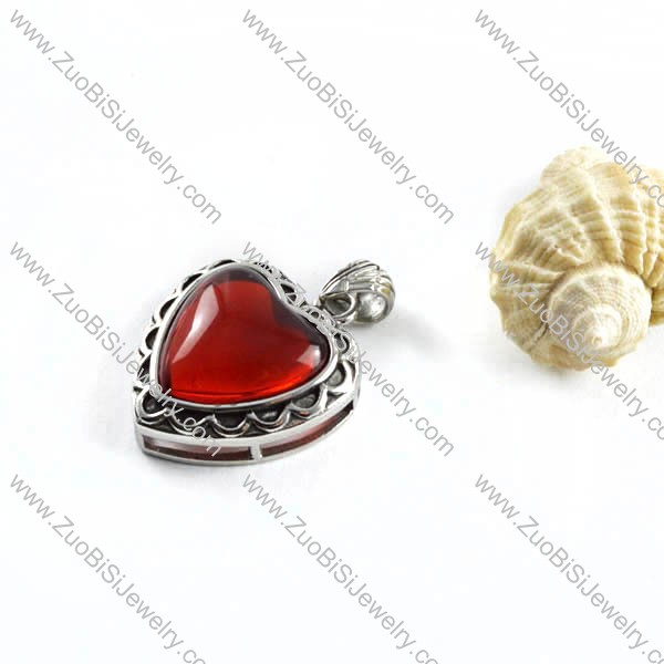 Rubine Stone Stainless Steel Heart Pendant - p000099