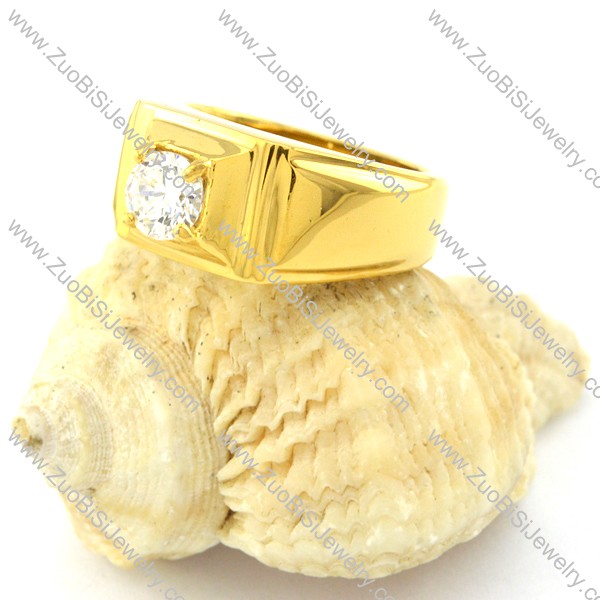 yellow gold plated stainless steel CZ Rings -r000845