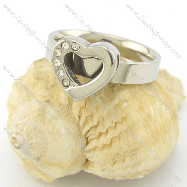 Silver Stainless Steel Heart Ring with Rhinestones r001510