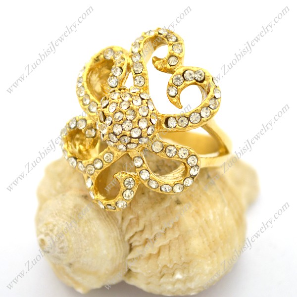 Gold-plating Flower Ring with Clear Rhinestones r002735