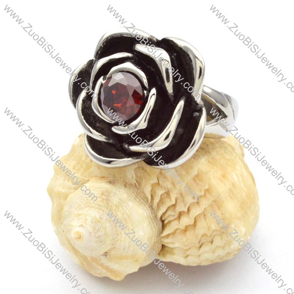 Stainless Steel Rose Rings with Dark Red Zircon -r000465