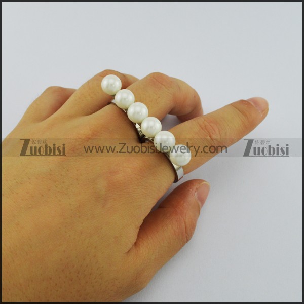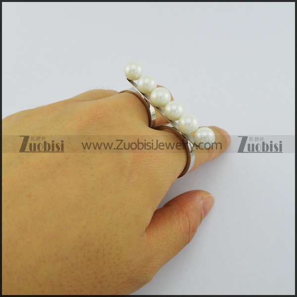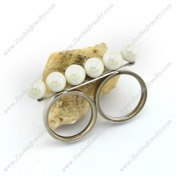 Two Finger Rings with 6 Off-white Plastic Pearls r002984