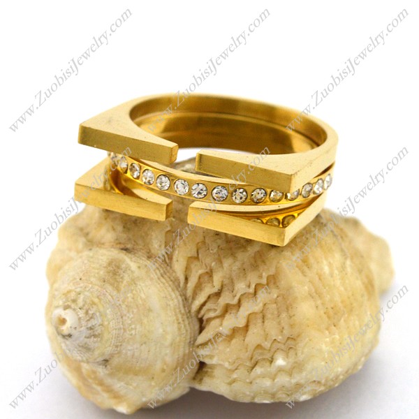14k Gold Stainless Steel Wedding Rings with Clear Rhinestones r003068