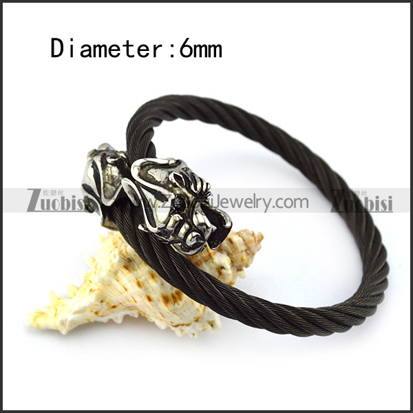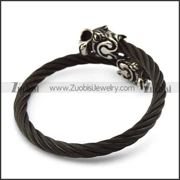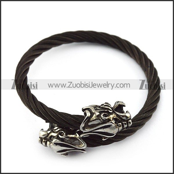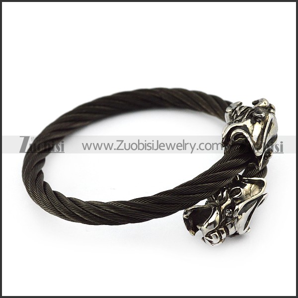 Two Dragon Heads Black Stainless Steel Wire Bangle b005833